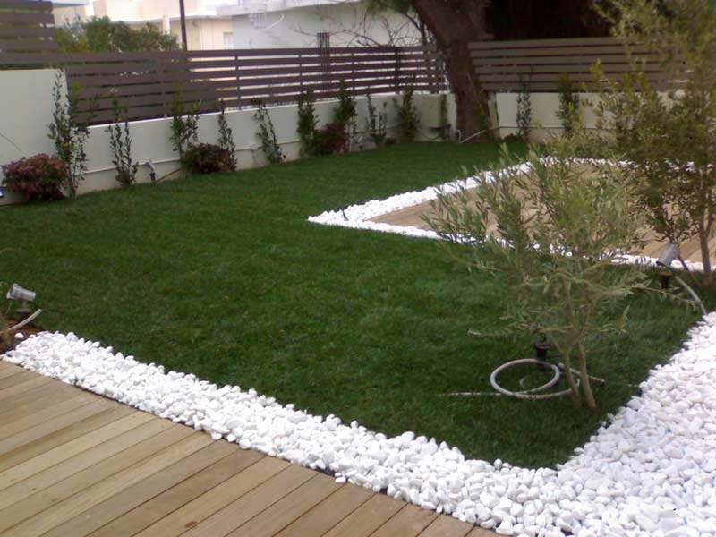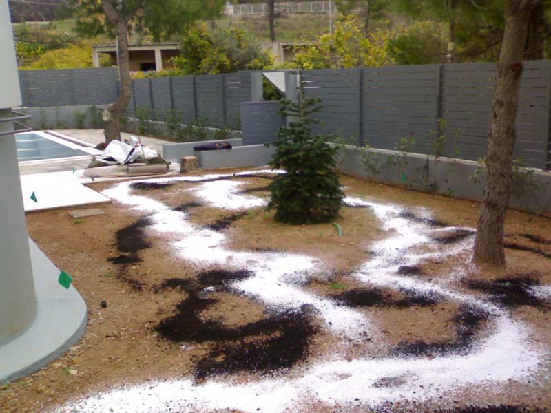 Φύτευση γκαζόν με χρήση βότσαλων, περιοχή Παλαιού Ψυχικού