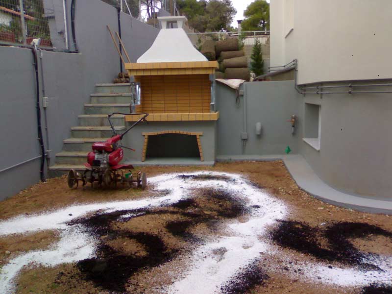 Προετοιμασία για φύτευση γκαζόν στην περιοχή της Πεντέλης